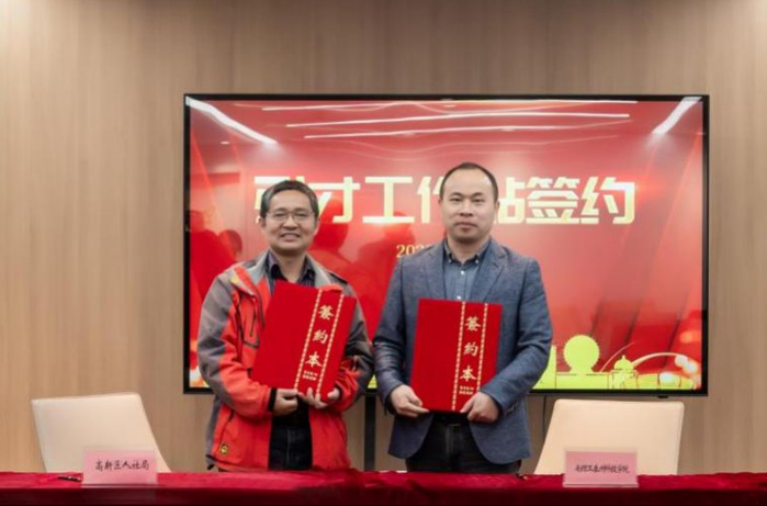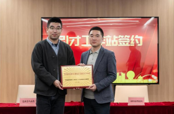 随后,学校与常州市高新区人社局、龙虎塘街道、优谷新能源、常荣电器等校地企三方就校地合作、校企合作、应用型人才培养开展座谈交流。盛宏寿就学校整体发展情况进行了介绍,创新创业与就业办公室副主任户廷勇围绕学校就业工作情况进行了介绍,常州新北区人力资源开发中心主任刘伟解读了有关人才政策,江苏常荣电气股份有限公司和优谷新能源科技股份有限公司负责人介绍了其公司的主营业务、发展情况以及用人需求情况。通过座谈交流,校地企三方最终达成合作共识,签订引才工作站协议并授牌。