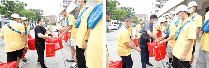 训练期间,校党委书记刘逶迤,副院长兼党政办主任刘桂涛,院长助理兼学生工作处处长盛宏寿顶着烈日冒着酷暑,走访慰问我校省运会开幕式表演集训的志愿者,并为他们发放慰问礼包,为志愿者们加油鼓劲。