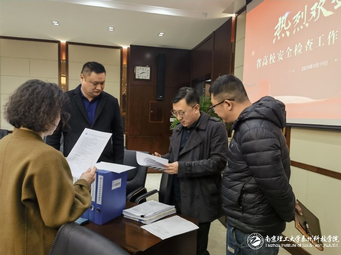 3月19日下午,江苏省高校常态化安全检查组来校检查指导校园安全工作。校党委书记刘逶迤,党委副书记兼副院长、纪委书记杨同标,后勤保卫处、资产与实验室管理处及泰州高教后勤有限公司相关负责人陪同检查。