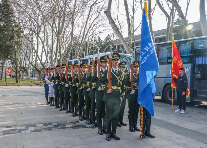 为进一步弘扬爱国主义精神,加强我校爱国主义教育,3月28日上午,院长助理盛宏寿带队赴南京理工大学本部开展了以国旗护卫队合作共建为基础的爱国主义教育交流活动,南京理工大学人武部主任吴志才热烈接待,我校基础科学部、校团委及人武部相关人员出席了本次活动。