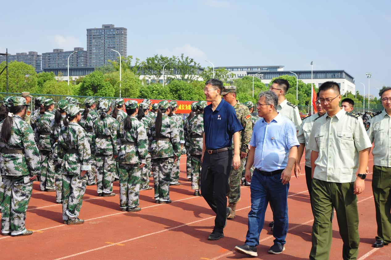 训练场上,全副武装的迷彩青年们训练有素,斗志昂扬。校领导对参训学生表现出的精神面貌给予充分肯定和鼓励,并与承训教官、指导员亲切交流,对他们在军训期间付出的努力和成效表示称赞。