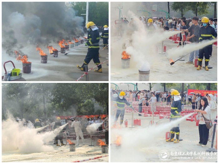 9月14日,灭火实操演练在篮球场举行,各二级学院军训学生、校学生生活管理委员会学生代表及后勤公司工作人员参加活动,了解学习灭火器使用方法,并现场实操体验。