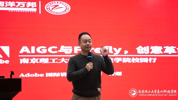 Adobe国际认证讲师符超先生带来了题为《Adobe:AIGC与Firefly,创意革命来袭!》的主题演讲。他深入剖析了生成式人工智能在数字媒体创意领域的广泛应用和深远影响,展望了未来创意产业的变革趋势。符超先生的演讲,不仅让同学们对新技术有了更深入地了解和认识,更为他们未来的学习和创作指明了方向。