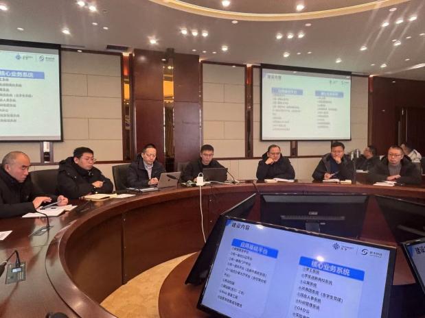 最后,鞠晨鸣强调指出,我校智慧校园建设坚持成果导向,以费用分段支付为抓手,建设成效显著。建设智慧校园的初衷使命是信息赋能,是让信息多跑路,师生少跑腿,提高工作效率,提升师生体验感与满意度。为了更好地发挥智慧校园的赋能作用,他提出了4点工作要求:一是要加强学习,提高认识。所有工作人员要进一步加强学习,提高信息素养,深刻领会智慧校园赋能学校高质量发展的重大意义;二是要加快开发,提升信息水平。要针对极个别业务系统开发进展缓慢的状况,加强沟通交流,切实制定科学合理的推进计划;三是要强化应用,提升应用能力。要以无纸化办公为抓手,推进业务系统的广泛应用,让信息系统全面实现从“好用”到“用好”的飞跃。四是要切实做好智慧校园二期建设规划。要聚焦师生实际需求,精细管理,精准服务。要切合学校实际,合理使用物联网、AI、大数据等新技术创新融合驱动,引领教育教学改革,助力人才培养质量提升。