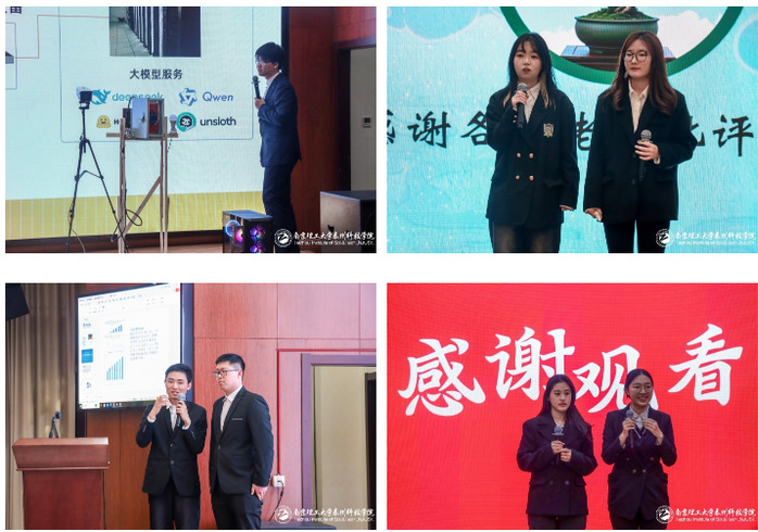 比赛中,来自不同专业的14 支参赛队伍围绕作品的创新性、可行性及社会价值等方面进行了精彩的汇报展示。作品涵盖多个领域,从前沿科技到社会民生,充分展现了当代大学生敏锐的社会洞察力和卓越的创新思维。各团队通过清晰的阐述、详实的数据以及生动的案例,全方位呈现了作品的核心内容与实施路径。在评审环节,评委老师从作品的选题、关键技术、市场应用前景、科技创新型等关键点进行深入提问和点评,从选手们可能忽视的盲点出发,给出了极具针对性的指导建议。这些宝贵意见为各团队的进一步完善提供了方向,助力参赛作品在内容和质量上实现新的突破。