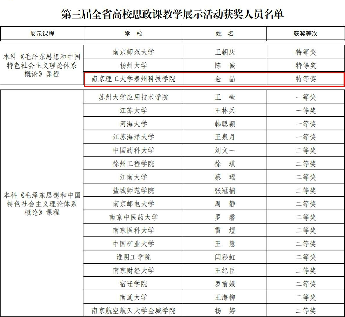 8月26日,省教育厅公布第三届全省高校思政课教师展示活动结果,我校马克思主义理论教学研究部金晶老师讲授的《毛泽东思想和中国特色社会主义理论体系概论》荣获特等奖。金晶老师及其教学团队入围第四届全国高校思政课教学展示活动,全省共58位思政课教师及团队获此资格。这是我校在思政课建设中取得的新突破。