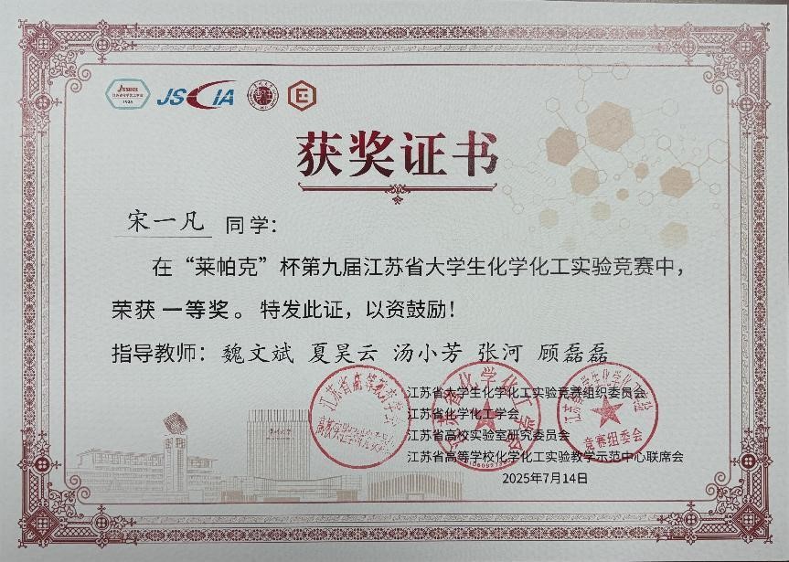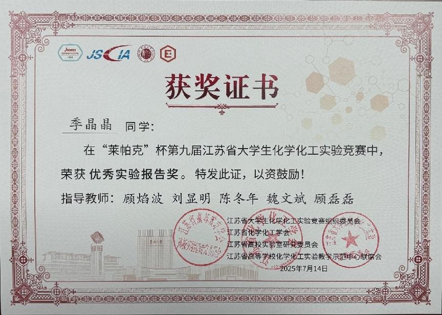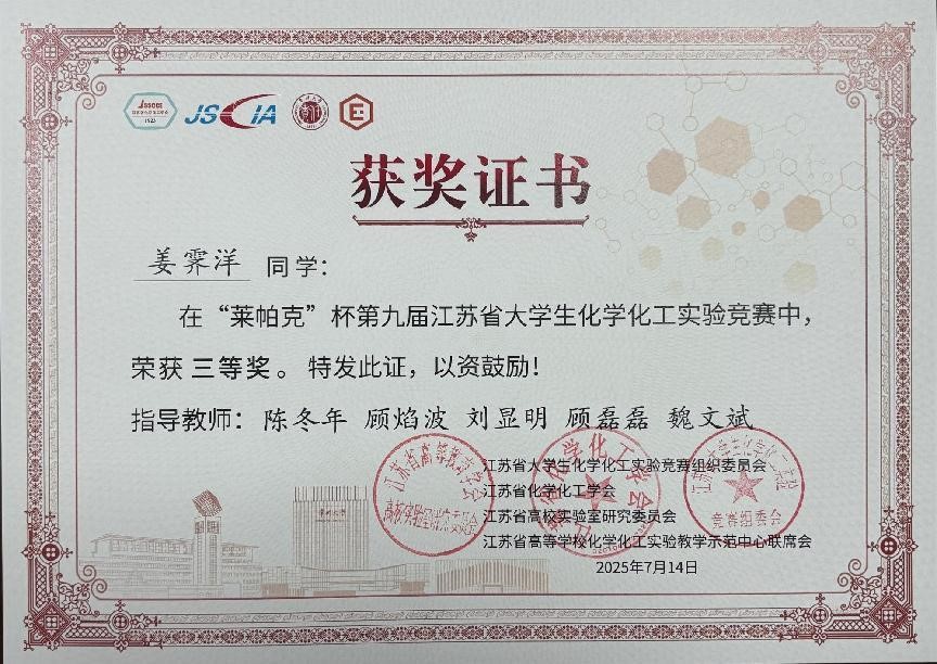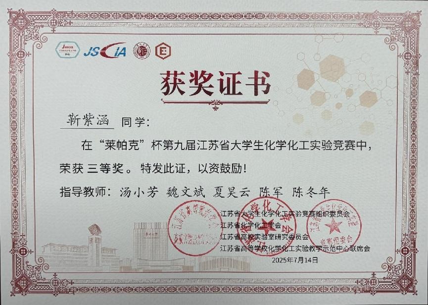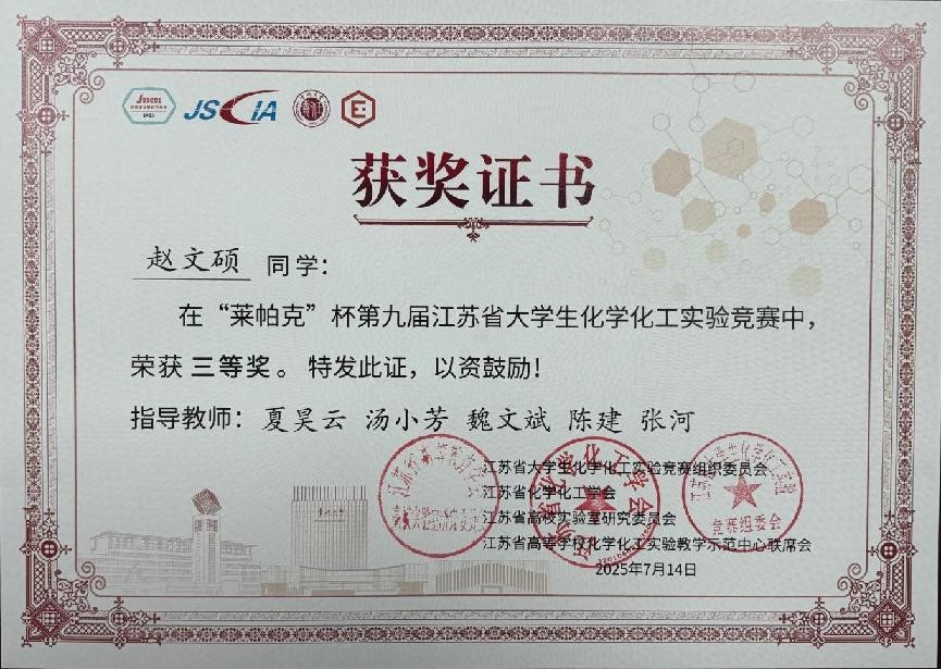 我校学子在江苏省大学生化学化工实验竞赛中再创佳绩