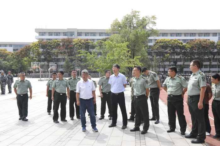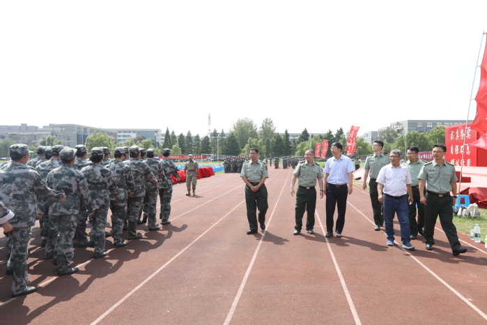 院领导实地考察了各连队的训练情况,对参训学生表现出的精神面貌给予充分肯定和鼓励;与承训教官、指导员进行了亲切交流,对他们在军训期间付出的努力以及取得的成效表示赞赏。