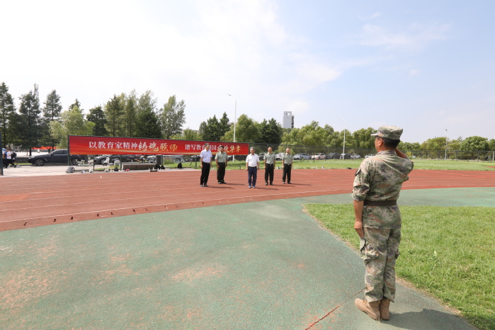 9月19日上午,院长杨森,党委书记孙元鹏,军训团团长、党委委员、教务处处长鞠晨鸣,军训团政委、党委委员、学生工作处处长高朝鲜,以及学工处相关同志等一行人赴学生军训训练场检查指导学生军训工作,亲切慰问2025级全体承训教官、参训师生。