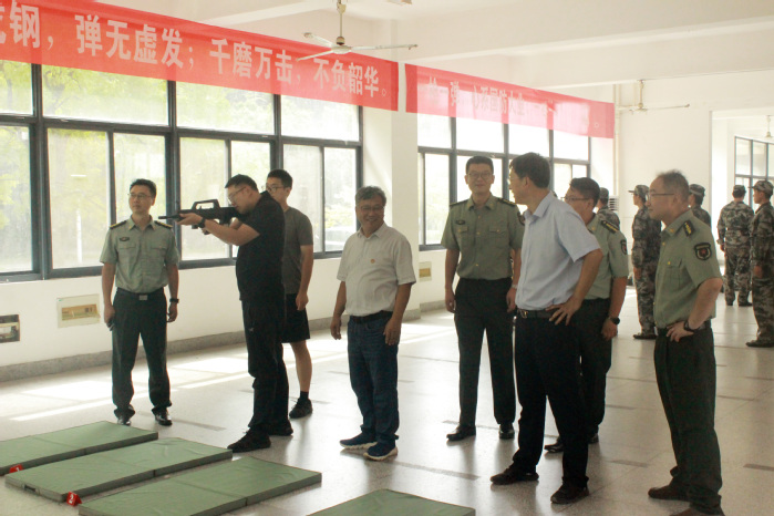 随后,院领导一行前往模拟射击训练场,观看学生模拟射击科目训练,并亲切询问同学们的训练感受和操作体会。