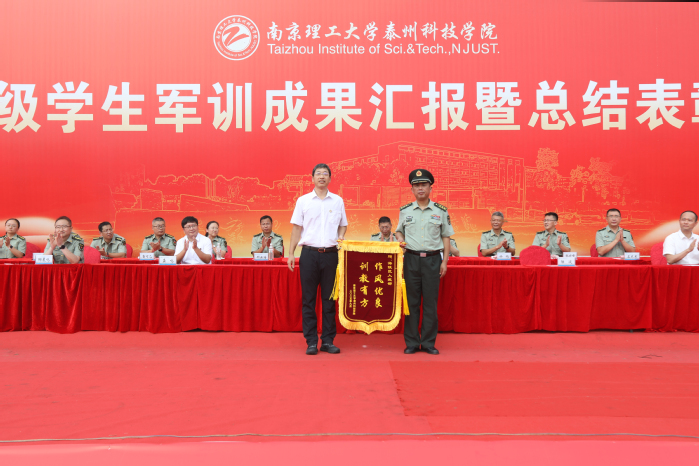 孙元鹏代表全校师生向海陵区人武部赠送锦旗,以此表达对海陵区人武部和各位教官的感谢。