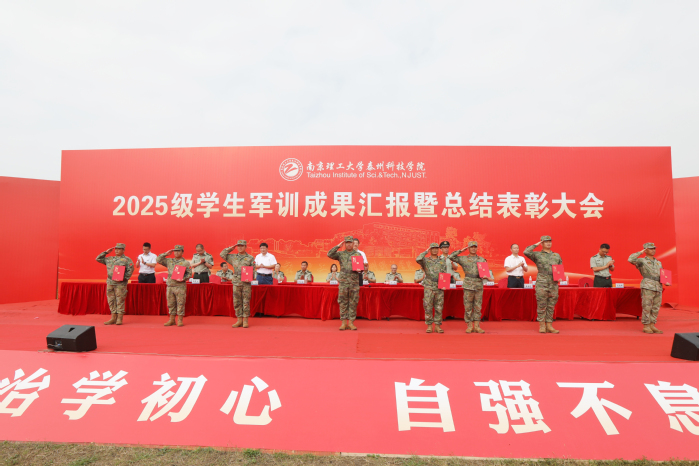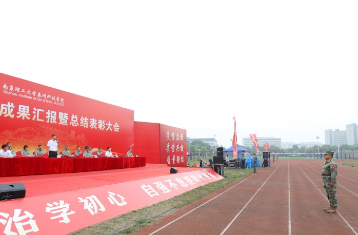 9月28日上午,2025级学生军训成果汇报暨总结表彰大会在学校大操场举行。海陵区人武部部长陆波上校,学院党委书记孙元鹏,院长助理、财务处处长龚鸣,党委委员、办公室主任崔海涛,党委委员、教务处处长、军训团团长鞠晨鸣,党委委员、学工处处长、军训团政委高朝鲜,党委委员、后勤保卫处处长张小慧,以及学院军训团领导、各二级学院副书记、全体承训教官、各连指导员和参训学生参加此次大会。大会由学工处副处长薛建华主持。
