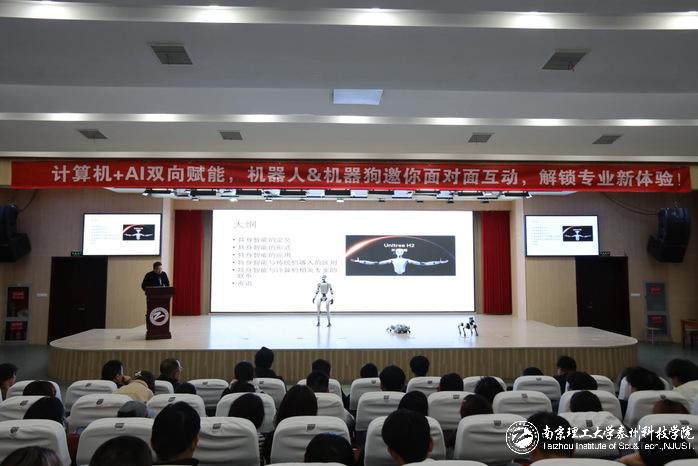 活动伊始,宇通智能机器人与机器狗的动态展示迅速吸引了全场目光。在技术人员的指令下,机器人灵活完成自主导航、精准避障等一系列高难度动作,机器狗则以敏捷的姿态在舞台中央来回穿梭,时而做出互动回应,时而展示语音交互功能,炫酷的科技表现瞬间点燃全场氛围。同学们纷纷驻足围观,不时发出阵阵惊叹,手机快门声此起彼伏,争相记录下这一精彩瞬间。不少新生表示,在近距离体验中感受到人工智能技术的应用魅力,更增强了对专业学习的期待。