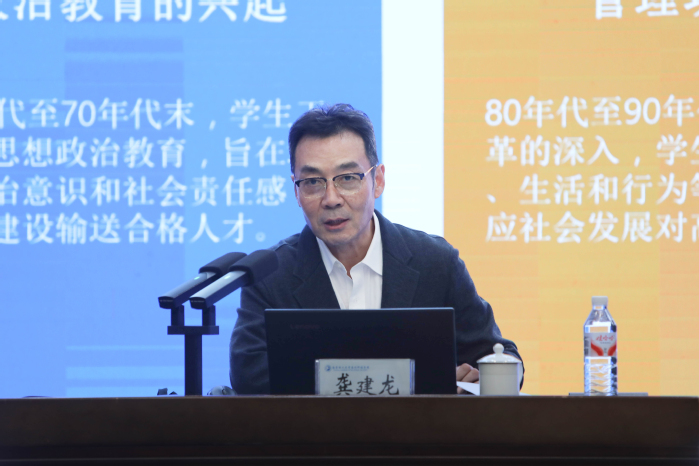 龚建龙梳理了学生工作的历史演变与核心目标,强调新时代学生工作要“以学生为本”,注重学生全面发展与个性化成长。他分享了南京理工大学学生工作在思政、心理、就业等方面的创新实践,介绍了“严管厚爱,求实争先”的学工理念及“百时奉献”“暑期国防行”等实践活动。他指出,学生工作已从传统的“管理型”向“服务型”“发展型”转变,辅导员应成为学生思想政治的引领者、成长成才的指导者和日常生活的贴心人。
