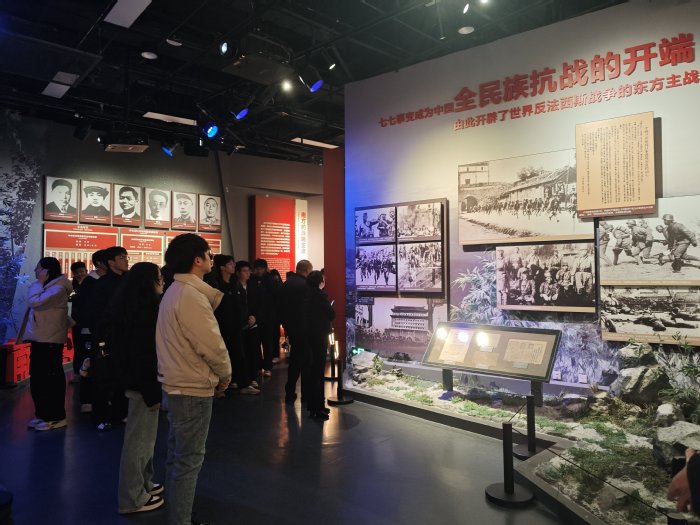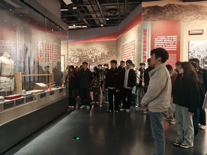 踏入馆内,沿着“建军历程—敌后斗争—重大战役—军民同心—发展荣光”这一精心设计的展陈脉络,“优才班”学生有序地展开参观。期间,大家重点聆听了新四军“铁军”称号的传奇由来,敌后游击战中展现出的战术智慧,以及军民鱼水情深、感人至深的动人故事等历史细节,亲身感受到了那段烽火连天的岁月。
