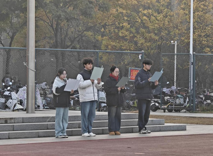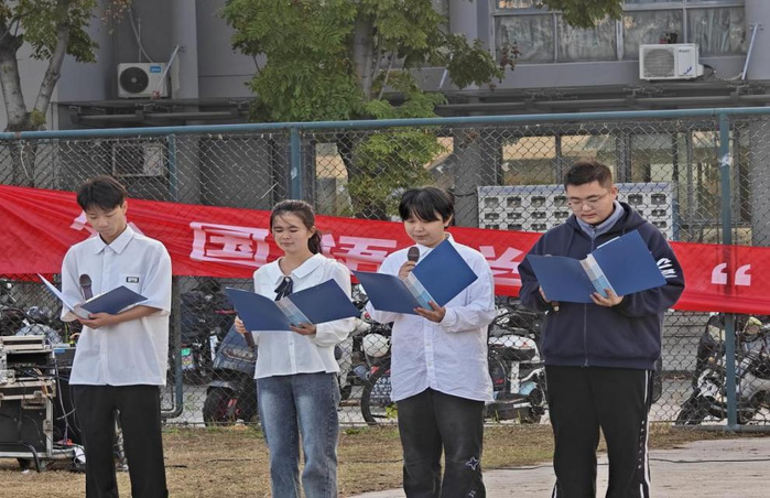 外国语学院和基础科学部分别以“国旗映少年,逐梦向朝阳”“铭记一二九 青春勇担当”为主题开展诵读活动。激昂的朗诵声中,师生们情感在国旗下交汇共鸣,爱国情怀在校园中激荡升腾。