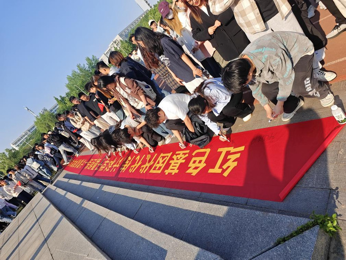 计算机科学与工程学院组织了“赓续红色血脉,争做时代新人”签名活动,同学们在横幅上郑重签下自己的名字,许下青春诺言。