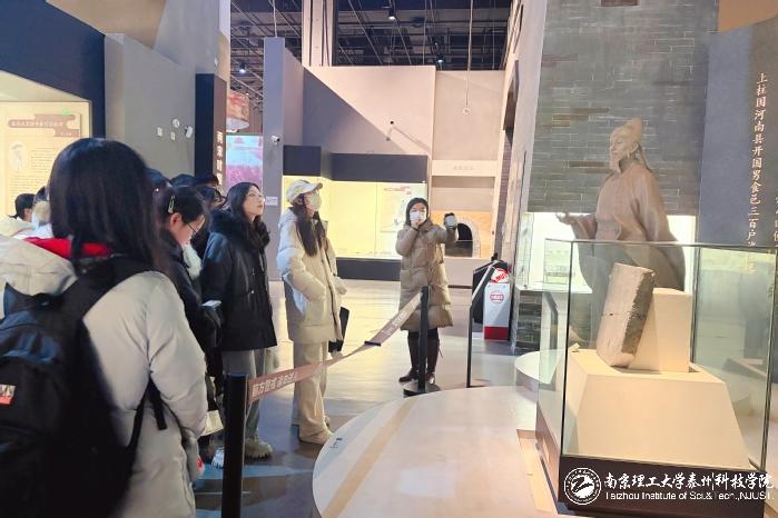 在泰州博物馆,这座承载着地方文脉的“立体史书”被转化为生动的思政课堂。戴婷婷老师以新石器时代麋鹿亚化石为切入点,讲解先民与自然和谐共生的古老智慧;结合革命烈士沈毅、特级战斗英雄杨根思等先进事迹,诠释了跨越时空、历久弥新的革命精神;从馆藏文物的工艺纹饰中,引导学生品味精益求精的工匠精神。师生们在行走中,对马克思主义的“魂脉”和中华优秀传统文化的“根脉”有了更为深刻的认知,文化自信与使命担当的根基愈发牢固。