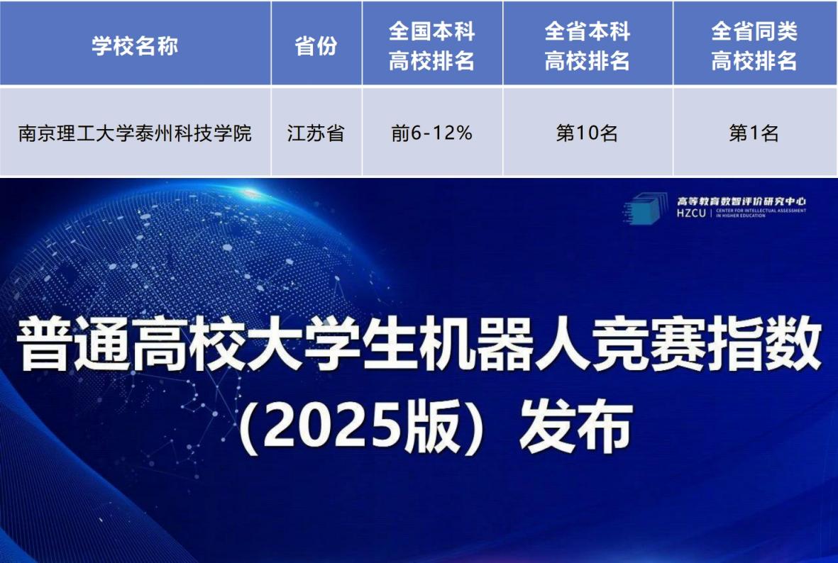 普通高校大学生机器人竞赛指数(2025版),我校位列全国本科高校前6%-12%,全省同类院校第1名