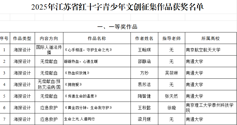 我校在2025年江苏省红十字青少年文创征集项目评审中荣获佳绩