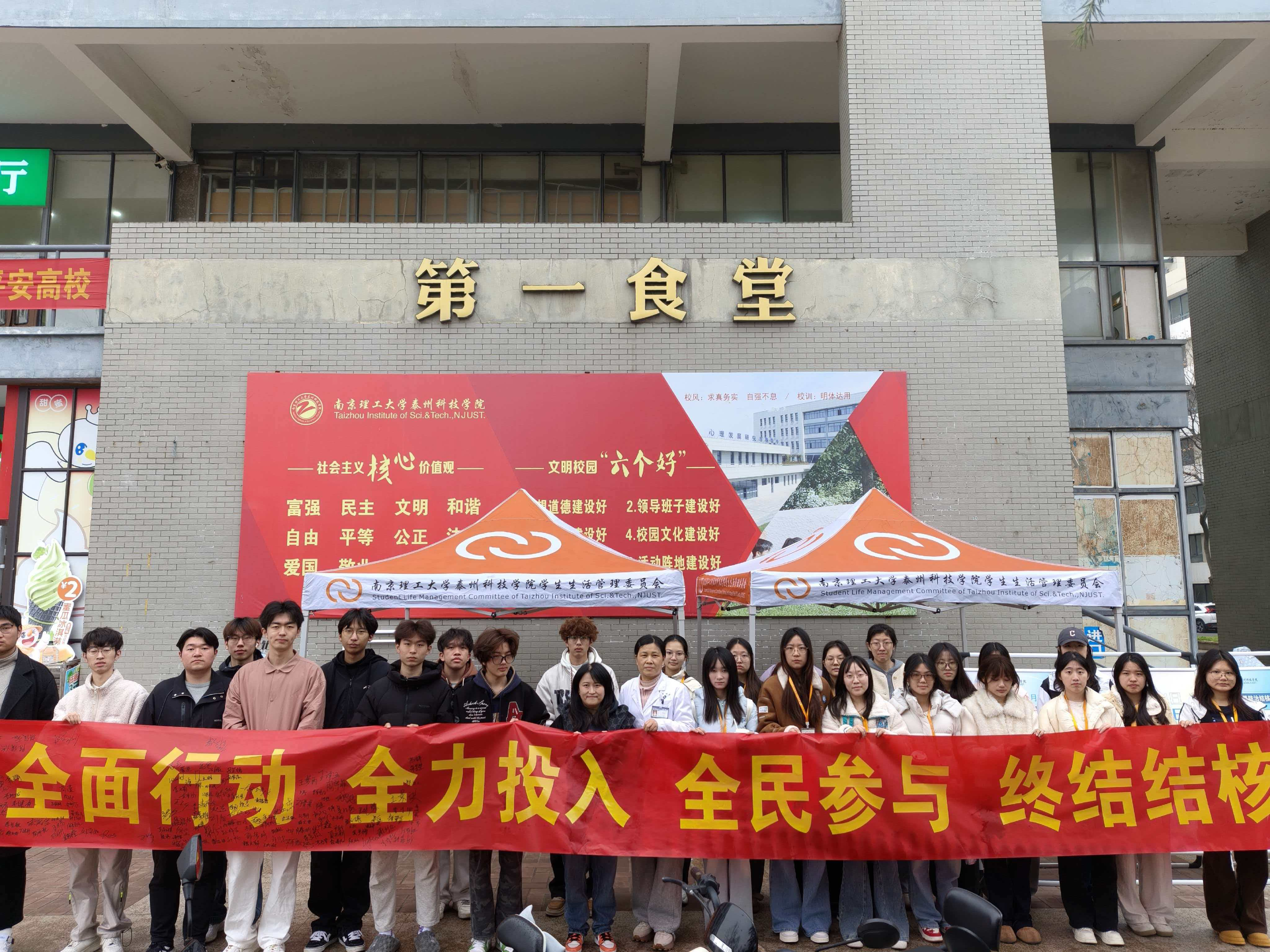 为进一步加强结核病防治工作,切实保障广大师生的生命健康安全,3月24日中午,我校在一食堂门口举办了以“全面行动 全力投入 全民参与 终结结核”为主题的结核病防治外场宣传活动。后勤保卫处相关负责老师、校医以及校学生生活管理委员会部分学生代表参加活动。