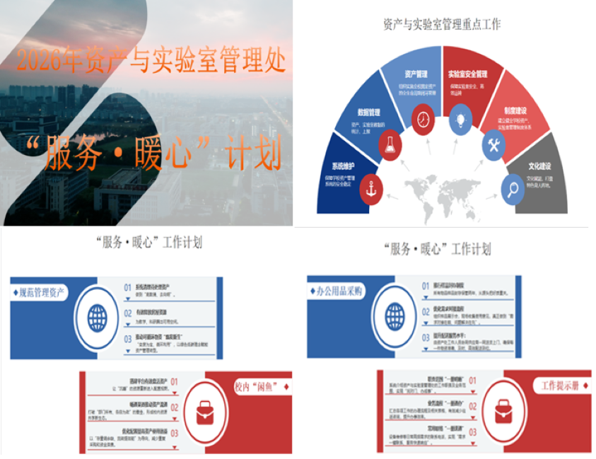 资产与实验室管理处冯新尧、刘佳、高源辰、罗元伍四位同志分别汇报了2026年各自负责领域的工作思路。