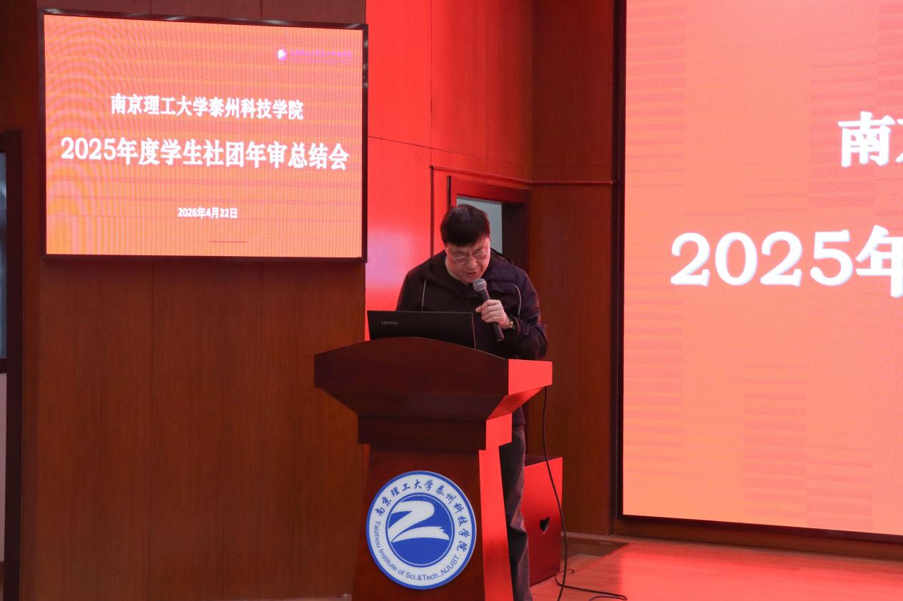 会议第二阶段召开2025年度学生社团年审总结会。根据《南京理工大学泰州科技学院学生社团建设管理办法》,校团委于2026年4月初组织开展了对全校在册43个学生社团的年审工作,重点围绕社团组织机构、成员构成、活动开展、财务状况、工作计划及有无违规违纪记录等内容进行综合审查。学生社团发展中心解希方老师代表校团委作年审工作报告。
